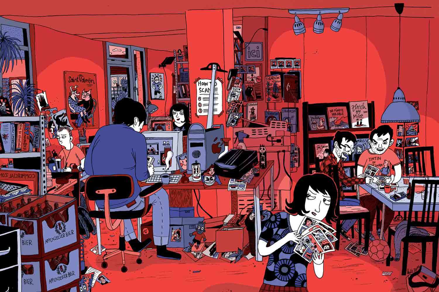 Today, comics outside of the classic genres attract a broad readership. In the past twenty years, the comic has achieved a spectacular cultural feat – once confined to the messy corners of children’s playrooms, comics are now considered a contemporary form of artistic expression with great potential in terms of content and aesthetic value. Graphic novels are reviewed in the literary sections of newspapers and have found their way into museums and other cultural establishments. These developments were possible thanks to laboratories where illustrators and writers could experiment, play and innovate far from the mainstream and without commercial pressure. In the German-speaking world, it is primarily the Zurich-based magazine Strapazin that assumes this role of facilitator. Since its beginning in 1984, Strapazin has maintained a clear position: No mainstream fare, but visual worlds that push artistic and narrative frontiers. For almost thirty years, Strapazin has observed, encouraged and reflected on the comic scene, thus contributing to the emergence of an independent German-language scene. But Strapazin’s influence is not limited by language; comic lovers around the world know and admire the magazine. The exhibition “Comics Deluxe!” tells a double narrative: Going beyond the simple portrait of an extraordinary magazine, the exhibition traces the evolution of an independent comic scene and the emergence of a wide readership. Artists: ATAK, Peter Bäder, M.S. Bastian/Isabelle L., Caprez/Schuler, Anke Feuchtenberger, Ursula Fürst, Andreas Gefe, Sascha Hommer, Ulli Lust, Nicolas Mahler, Julia Marti, Thomas Ott, Kati Rickenbach, Anna Sommer, Milva Stutz, Martin tom Dieck.