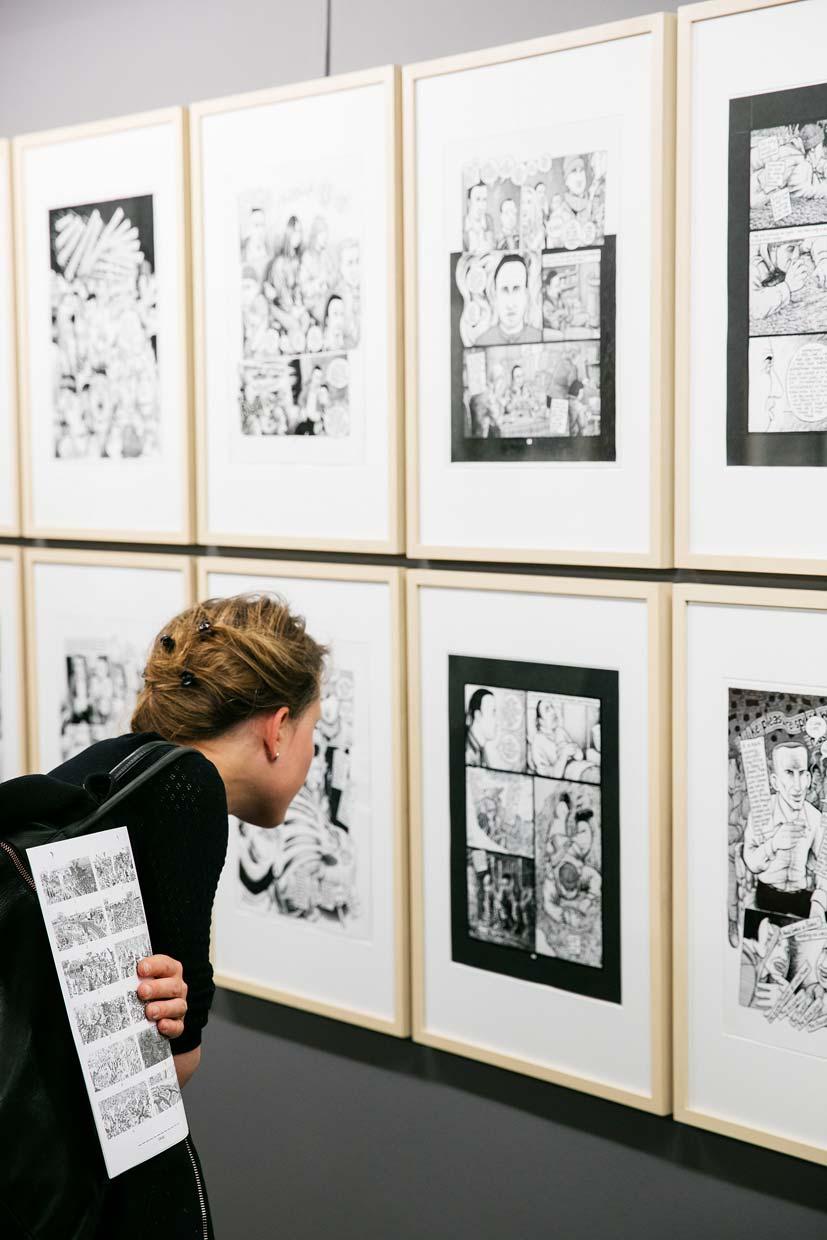 Joe Sacco (born 1960) is a Maltese journalist and cartoonist living in the USA. He has revived “comics journalism” and developed it to perfection. Today, he is considered the most important representative of the genre. His reports from conflict zones offer deep insight into areas of the world where discrimination, hate, persecution, and war are ever-present. In his books, Sacco lends a voice to people suffering from violent conflicts, and thus arouses understanding and empathy with the readers. By using a critical and highly sophisticated approach, and by setting an exceptional standard of quality, Sacco has broadened the scope of comics and won new audiences. The raw material for Sacco’s reports consists mainly of interviews conducted on site, and is supplemented by intense research, sketches and photographs. The narrative is developed out of statements and testimonials and then translated into a series of drawings. These are interwoven with written comments and direct speech. The result is a well-balanced narrative of image and text. Sacco almost always draws in black and white. His characters are stylized and drawn in clear lines, while the backgrounds are often rendered in a more realistic way. The Cartoonmuseum Basel is the first museum in Europe to present a cross-section of this exceptional artist’s work. Joe Sacco has received numerous awards, among them the American Book Award, the Eisner Award and the Guggenheim Fellowship. The exhibition comprises more than 150 original drawings, from Sacco’s autobiographical and political early works, to his well-known reports “Palestine”, “Safe Area Goražde” and “Footnotes in Gaza”, and his latest satirical works. Several original drawings from a poignant panorama of the battle of the Somme (World War I) published in 2014, are a particular highlight of the exhibition.